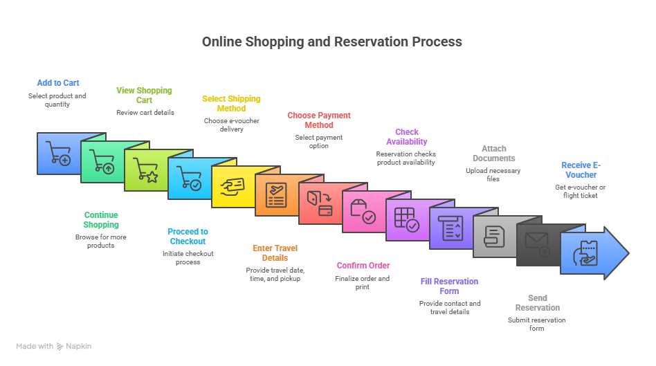 The Reservation will send E-Voucher or Flight Ticket via e-mail as contact detail to use the product and service.